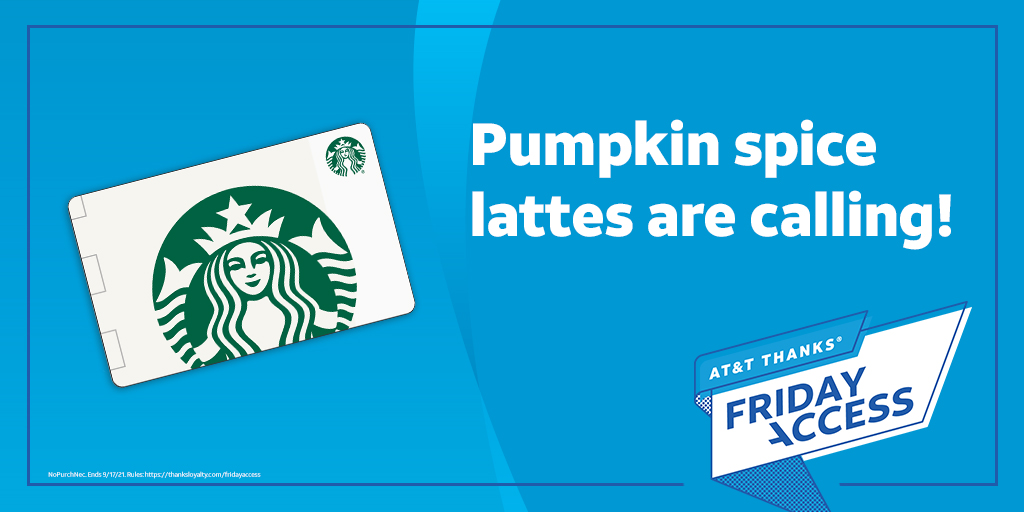 At T Thanks On Twitter Get Your Favorite Fall Drink With Our Scratch To Win Game At Https T Co Decnqzfp1e Or In Your Myat T App For A Chance To Win A 5 Starbucks Egift Check